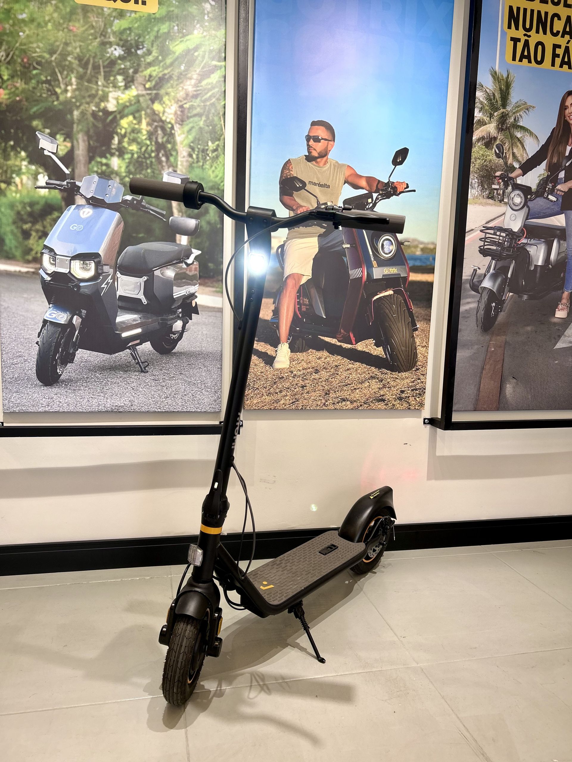 Sistema de Freios Avançado: Freio elétrico dianteiro e Freio a disco traseiro