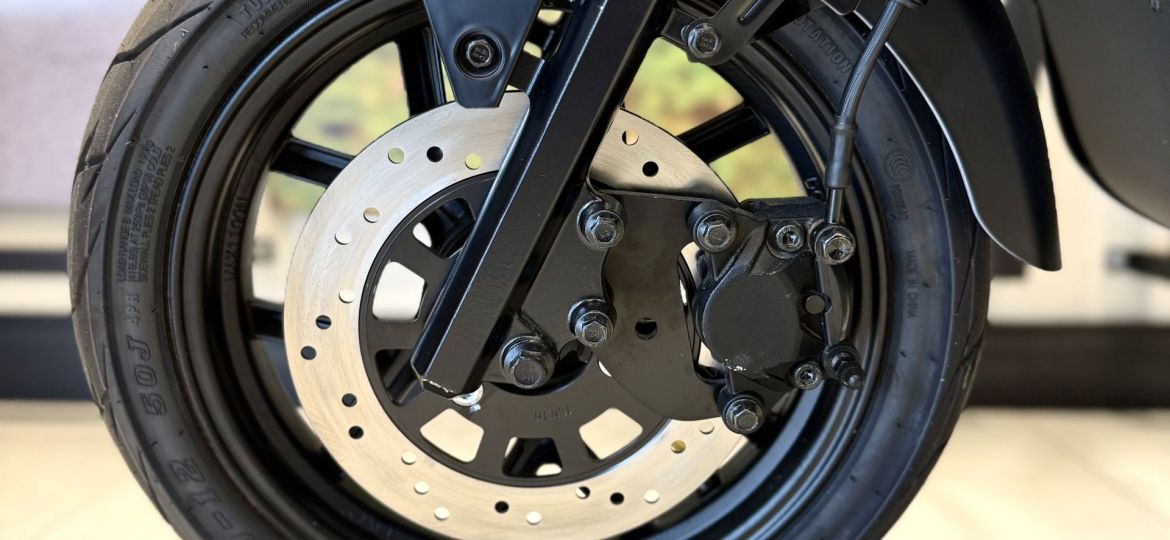 Freios a disco nas duas rodas, frenagem eficiente e segura