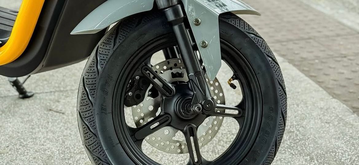 Freio a disco hidráulico, garantindo frenagens mais seguras.